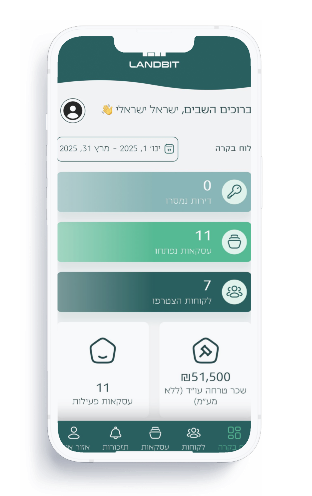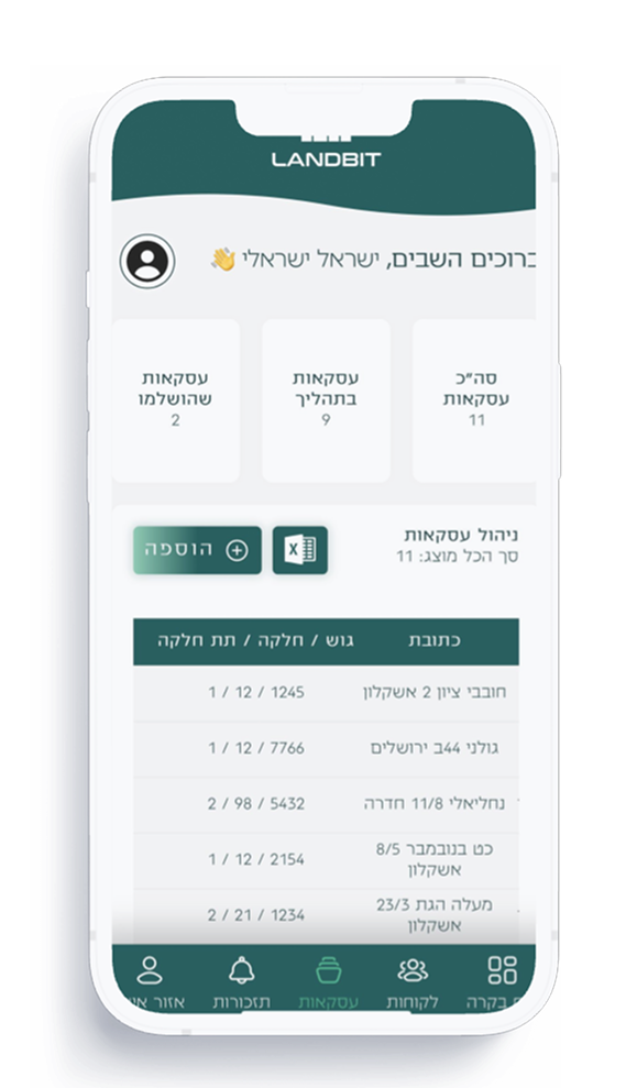 המערכת הראשונה מסוגה בישראל לניהול עסקאות, תעדכן את הלקוחות אוטומטית בשלבי העסקה ובמסמכים, תתן תזכורות בוואטסאפ ובמייל, ותחסוך לכם שעות עבודה מיותרות – כדי שתוכלו להתמקד רק בדברים החשובים באמת.